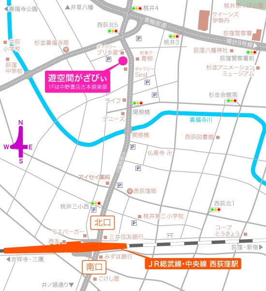 電 車:JR中央線・総武線西荻窪駅