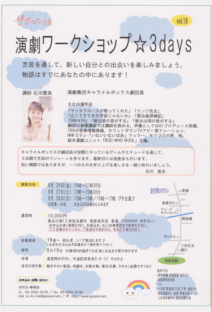 「がざびぃ演劇ワークショップ☆3days Vol.18」は、終了いたしました。